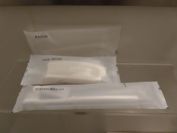 歯ブラシ、髭剃り、串はあらかじめ部屋に置かれていた。