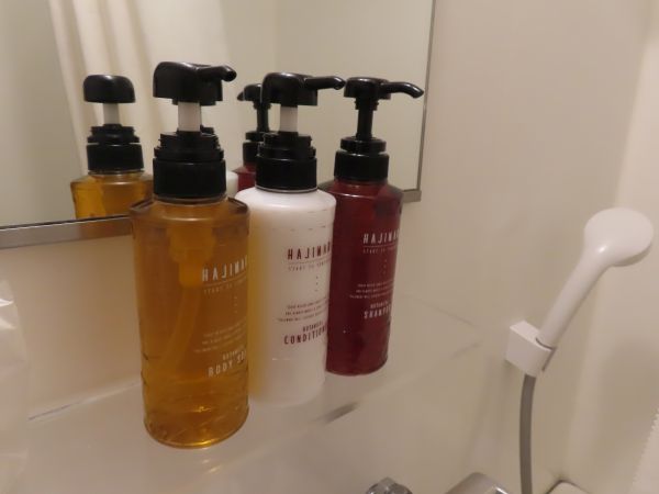 ボディソープ、シャンプー、コンディショナーはHAJIMARIで揃えられていた。