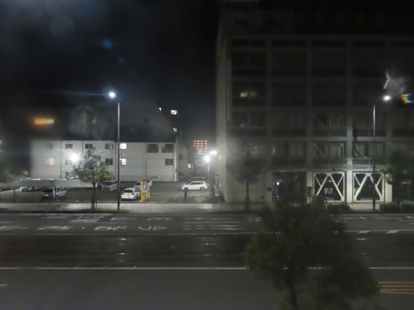 部屋からの風景。目の前の通りを路面電車が走行する。