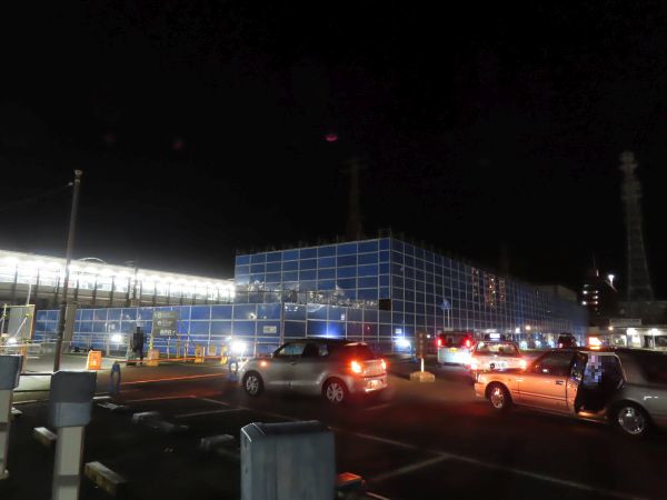 現在の高架駅へは、仮設の通路を通っていく。