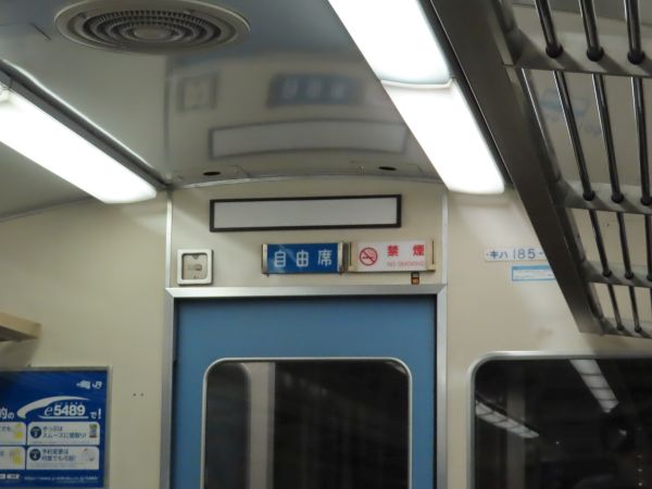 特急列車でもあるような「自由席」の表示が、デッキとの仕切り扉の上にある。