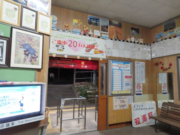現在は無人駅であるが、有人駅時代からの駅舎があり、中には写真や絵が飾られるなど、温かみのある雰囲気であった。