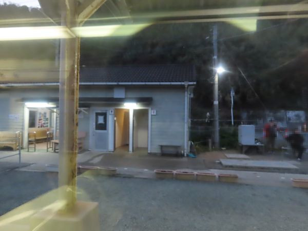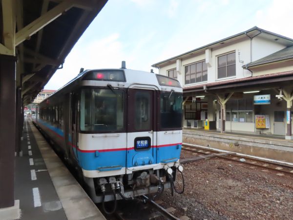 6時35分に伊予上灘に到着した。ここで対向の松山行きとの行き違いのため17分停車する。この車両はワンマン運転には対応しておらず、車掌が乗務している。車掌に青春18きっぷを見せて、列車から離れる。