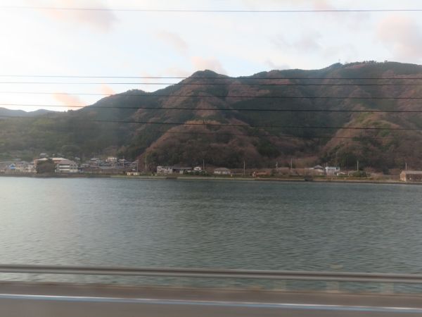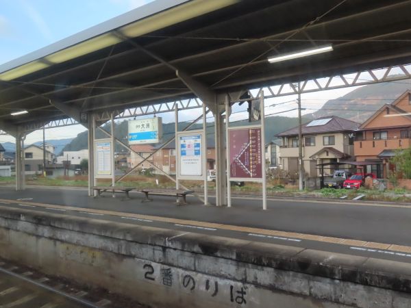 伊予長浜を出ると、90度近いカーブで伊予灘から離れ、肱川に沿って伊予大洲へ向かう。