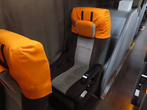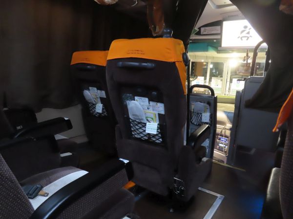 車内は夜行バスでは一般の3列独立シートである。今回の座席は、前から3列目の3Cである。すぐ後ろがトイレなので、気兼ねなくリクライニングができる席である。