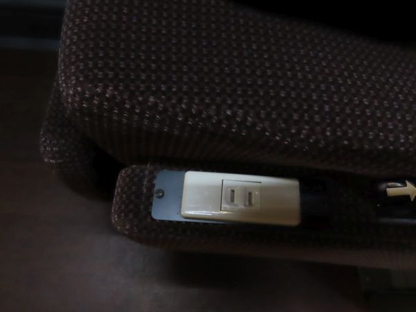 各座席にはコンセントとUSBの充電設備が備わっている。