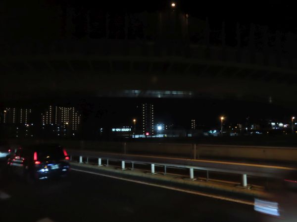 順調に走行していたが、20時25分、大師料金所を通過すると、渋滞の最後尾となり、停止する。大師料金所から浜川崎ICの間で車線規制を伴う工事が行われているようで、車線減少による渋滞だったようである。ゆっくりと進み、5分ほどするとその現場を通過し、再び速度を出す。