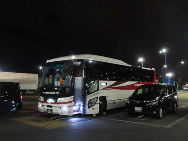 この日は半袖のシャツを着て乗車していたが、空調のせいだろう、寝ている間に少し肌寒くなった。今年の9月は厳しい残暑が続き、9月27日の東京の最高気温は28度、最低気温も22度で、外では半袖でも全く問題なかった。ただ、夜行バスで寝るにあたっては、羽織るものを一枚持ってくるべきであった。かつての夜行バスには当然のようにブランケットが用意されていたが、コロナ禍を経て、会社によって対応に差が生じ、西東京バスでは現在もブランケットのサービスを中止している。