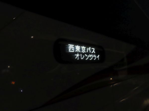 この日の担当は西東京バスであった。西東京バスは京王グループのバス会社で、八王子市に本社を有し、八王子市をはじめ東京都西部で一般路線バスを運行している。このオレンジライナー号は、現在では西東京バスの一般路線バスの運行エリアには立ち入らず、東京側の停車地は新宿と横浜のみであるが、京王バスではなくて西東京バスが運行を担当している。