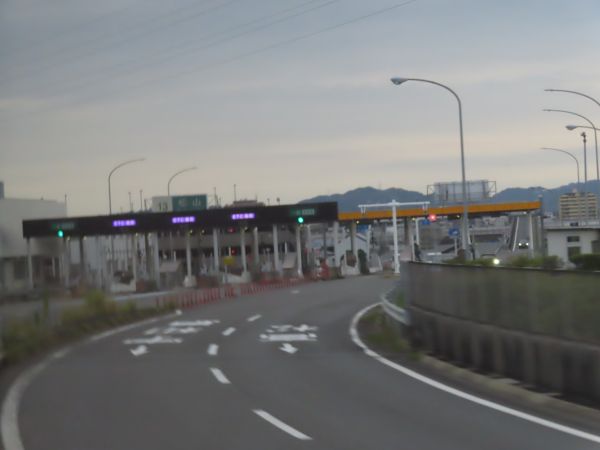 ここからは照明を点灯したまま走行する。再び高速に戻り、6時41分、松山インターで高速を降りた。