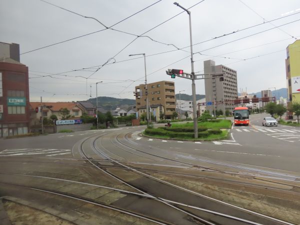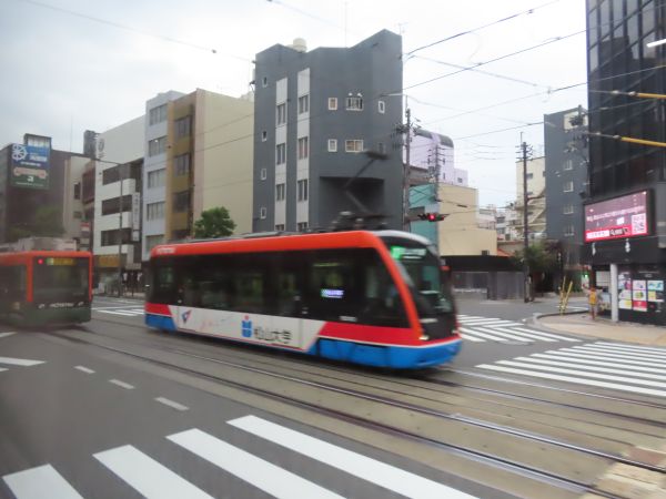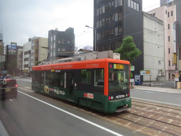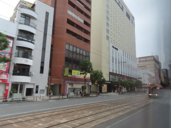 ここから道後温泉までは市内電車と並走する。大街道付近を通過する。