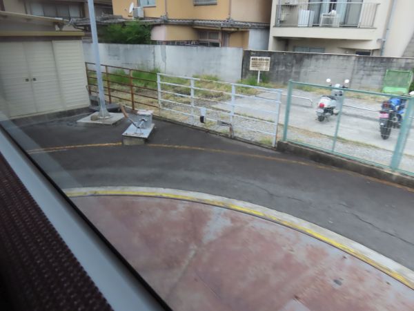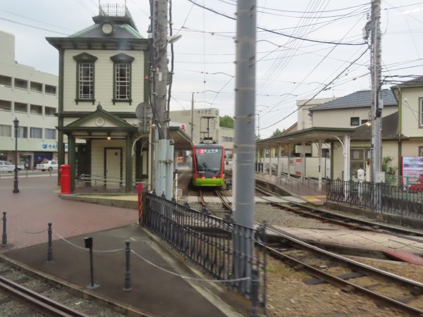 方向転換を終えた後、7時13分、道後温泉の停留所に到着した。ここで車内の客は私だけになった。