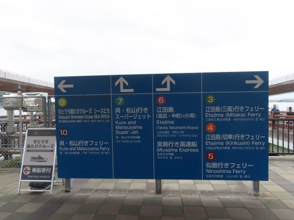 宇品旅客ターミナルからは、呉・松山行きのほか、江田島、似島、宮島へのフェリーも出発する。
