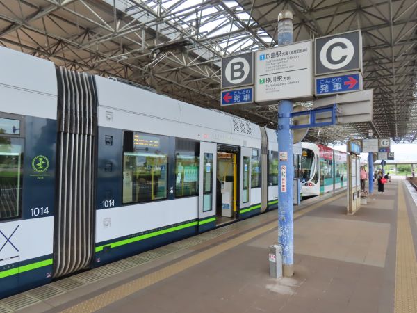 私は、一昨年、広島駅から広電宮島口まで、2号線を乗り通したので、今回はそれ以外の乗り残していた路線にまとめて乗車する。また、その際はまだ広島駅の停留所は地上であったが、つい先日の2025年8月3日に、広島駅停留場が駅ビル「ミナモア(minamoa)」の2階に移設され、それに伴い、従来の本線の一部である広島駅~猿猴橋町~的場町間が廃止となり、本線の広島駅~稲荷町、皆実線の稲荷町~比治山下間が新設された。この新設された2路線は「駅前大橋ルート」と呼ばれている。