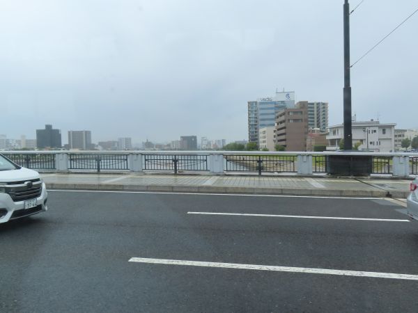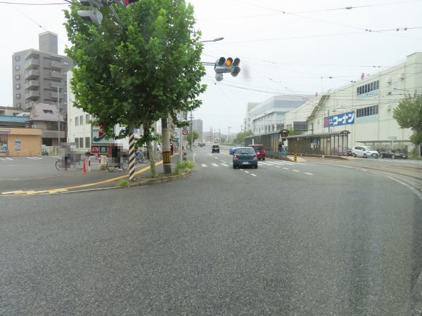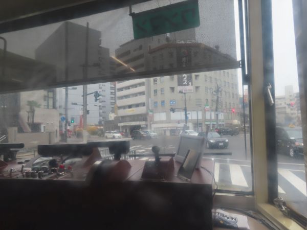 稲荷大橋を渡り、稲荷町停留場を出発すると、交差点で信号待ちとなる。(以下の一部写真は別の乗車時に撮影)