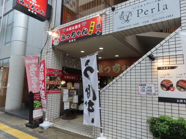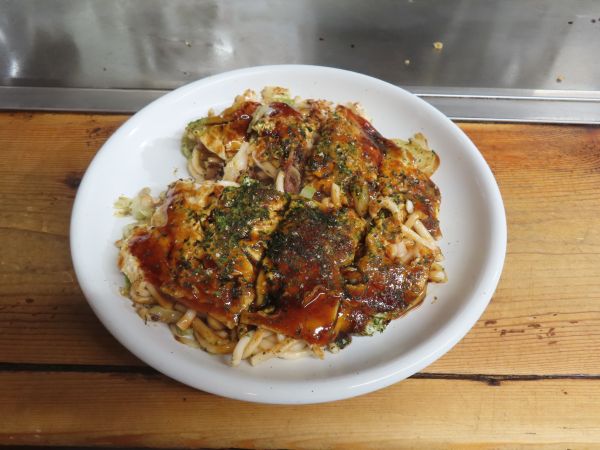 この日は、まだ朝食すら食べていなかったが、もうお昼時に差し掛かろうとしている。松屋か吉野家で軽く食べようかと思って歩いていたが、少し歩いていると、「みっちゃん太田屋」というお好み焼店を見つけたので、ここに入る。カウンター席とテーブル席があり、カウンター席に座る。カウンターの目の前に鉄板があり、そこでお好み焼きが作られている。