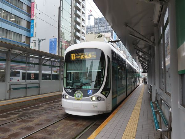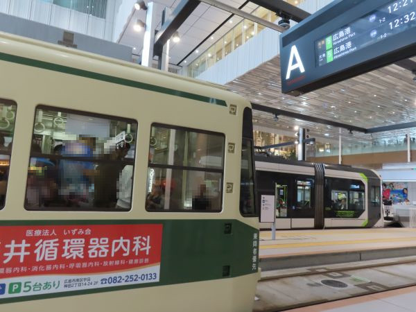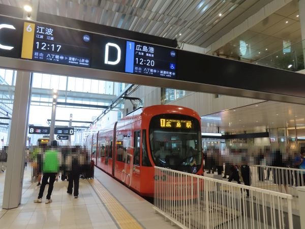 松山からの高速船が広島港の宇品旅客ターミナルに到着したのは10時10分過ぎであった。宇品旅客ターミナルを出ると、目の前が広電市内線の広島港(宇品)停留場である。ここから広島駅へは1号線と5号線があり、5号線の方が所要時間は短い。一方で、紙屋町方面へ向かうのであれば1号線ということになる。
