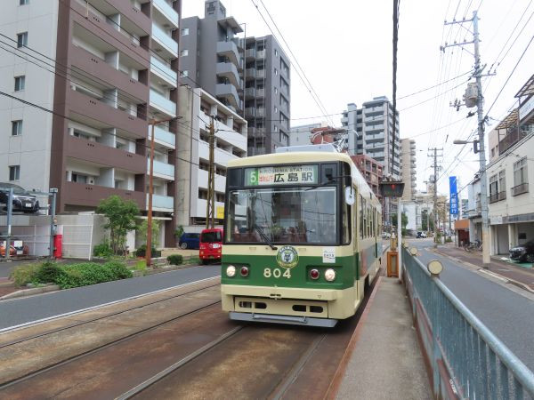 江波からは広島駅行きの6号線で紙屋町まで向かう。昼間は1時間に5本程度の運行である。