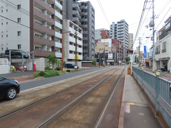 先ほど来た道を十日市町まで戻り、本線で土橋へ進む。本線はこの後右折して広電西広島、さらに宮島へと繋がるが、江波線は直進する。