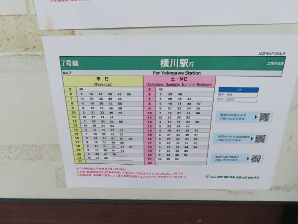 横川駅へは7号線に乗ればよいのであるが、昼間の7号線は広島港始発よりも広電本社前始発が多い。