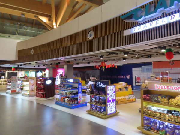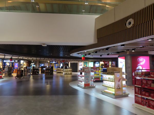 出国審査を通過すると、通路の両側には免税品、お土産品のお店が並ぶ。