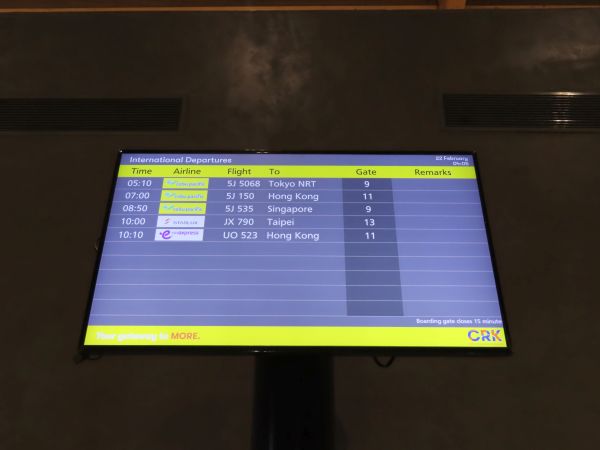 午前中は、東京行きの後に、セブパシフィック航空の香港行き、シンガポール行き、スターラックス航空の台北行き、香港エクスプレスの香港行きと続く。