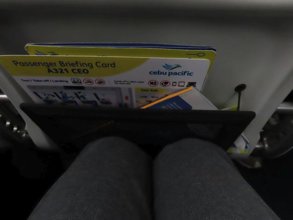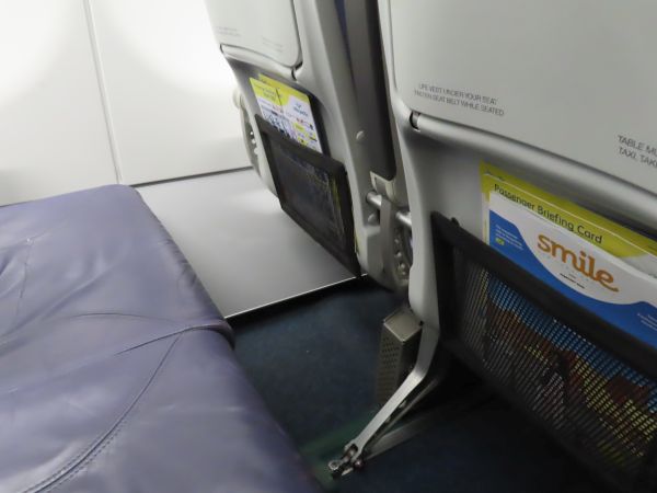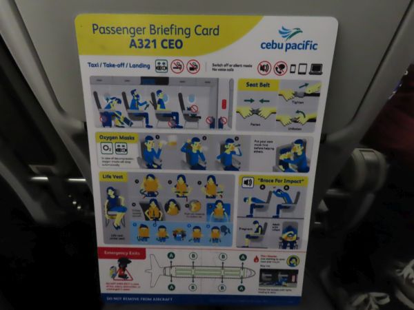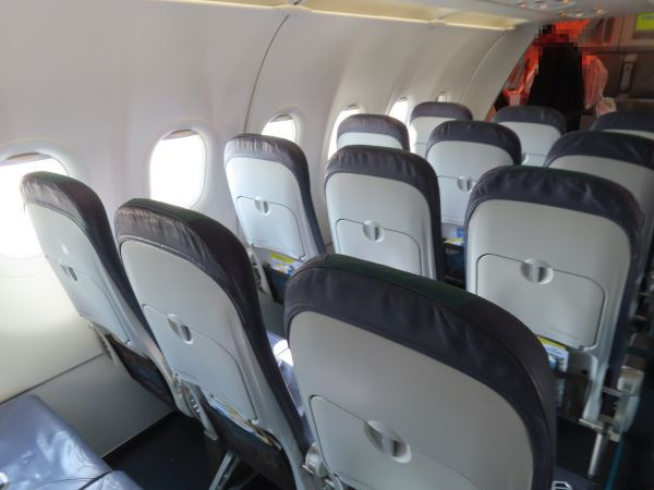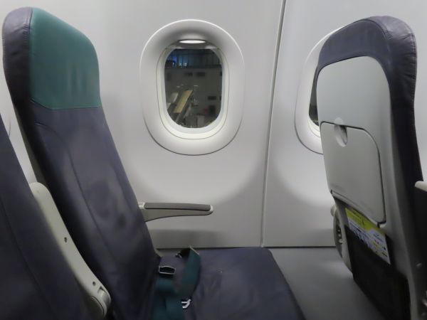 本日の機材はA321-200型であった。横は3+3列で一般的な配置であるが、230席仕様とのことで、さすがにシートピッチは狭く、座席にはリクライニング機構はない。
