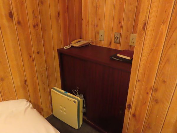 奥にも棚があり、ここに電話が置かれているほか、コンセントがある。