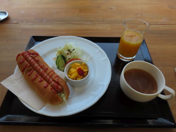 すぐにプレートが提供された。この日のメインはホットドッグであった。美味しくいただいた。