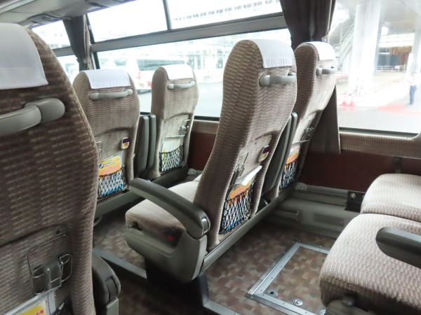 車内は横4列の一般的な高速バスのそれであるが、内装はやや古めである。