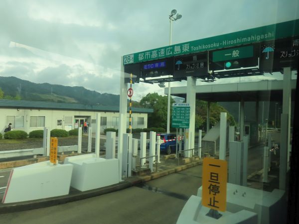 バスは、定刻7時30分に広島駅新幹線口を出発した。車内は満席で、最後の方に並んだ何名かは乗ることができなかったが、この時間帯は10分間隔での運行で、次のバスは7時40分である。