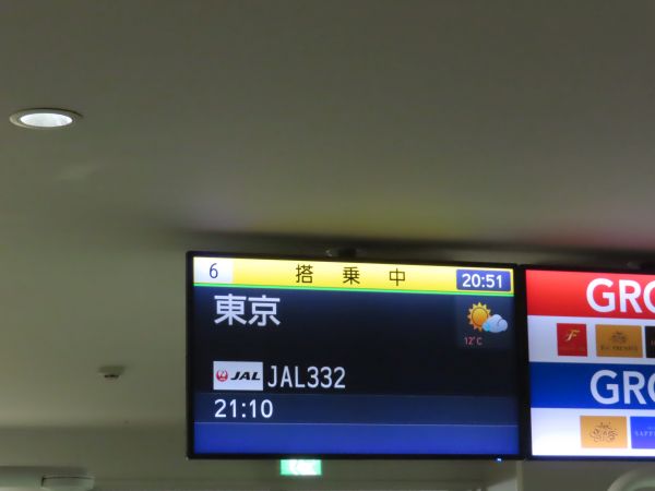 21時10分発の日本航空332便羽田行きに搭乗する。保安検査場を経て6番搭乗口へ向かう。