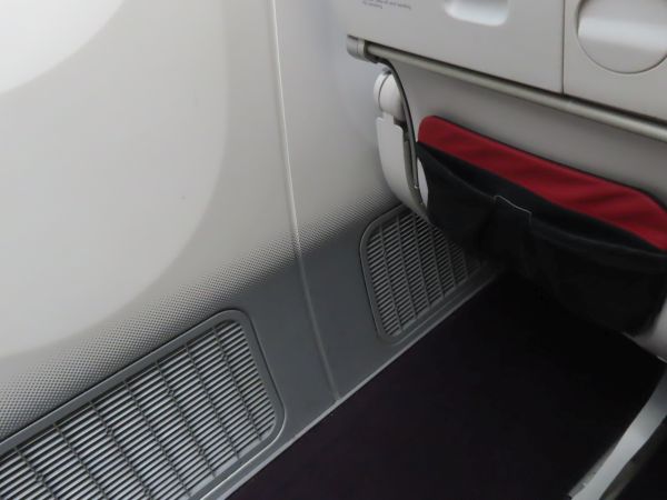 今回の座席は後ろから2列目の55Aの席を予約していた。2+3+2となっているところの窓側であった。窓までわずかに距離がある席である。