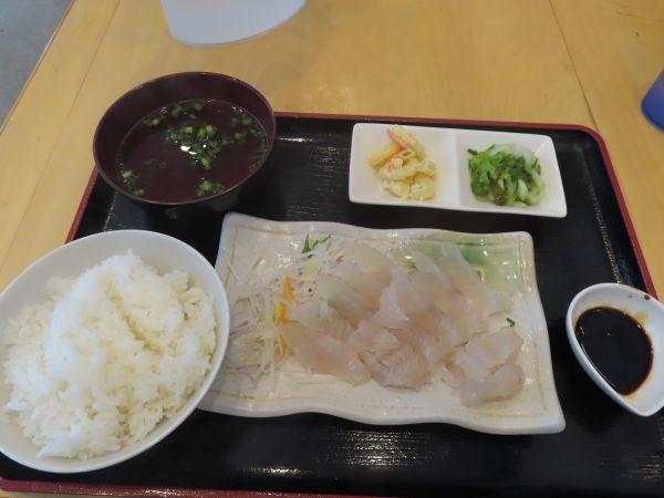 ヒラメの唐揚げ、煮つけなどもあったが、今回は直島ヒラメお刺身定食を注文した。2,000円也。美味しくいただいた。