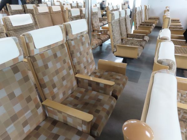 船内にはイス席とソファー席がある。