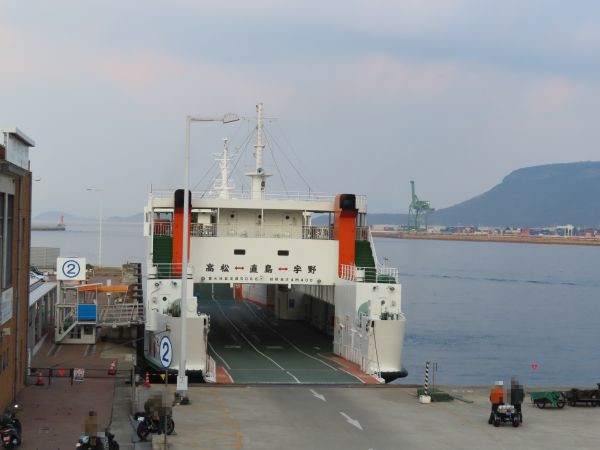 直島の宮浦港から高松までは、フェリーが1日5便、高速船が3便運航しており、今回は14時20分発のフェリーに乗船する。