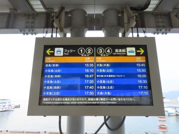 今回直島から乗船してきたフェリー「なおしま」は、折り返し15時35分の直島行きになるようであった。