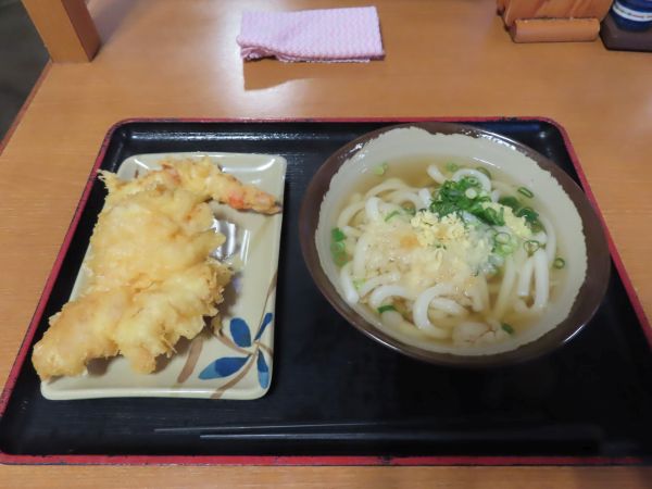 本日はかけうどん小、海老天、とり天を注文した。かけうどん小が340円、海老天が190円、とり天が230円で、Paypayで支払った。なお、うどんの小は1玉、中は2玉、大は3玉である。