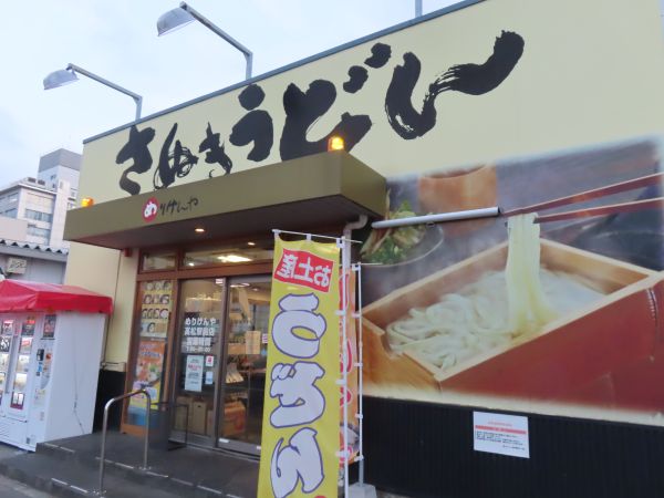 駅前を少し歩いたのち、もう3回目であるが、高松駅の向かいにある「めりけんうどん」に入った。