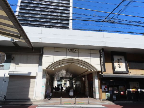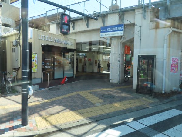 京成本線堀切菖蒲園駅前を通過する。