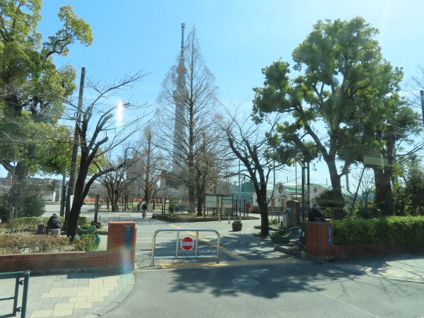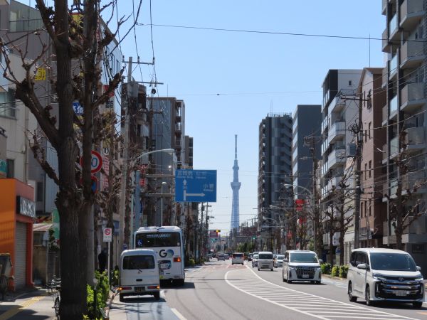 正面に東京スカイツリーが見える。