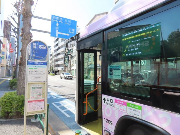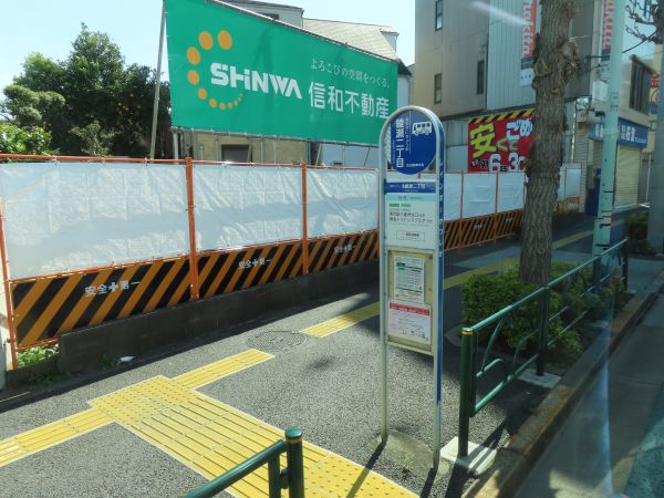 川の手通りを南方、スカイツリーの見える方向へ進んでいくと、まもなく綾瀬二丁目停留所に着いた。綾瀬駅から徒歩5分ほどであった。