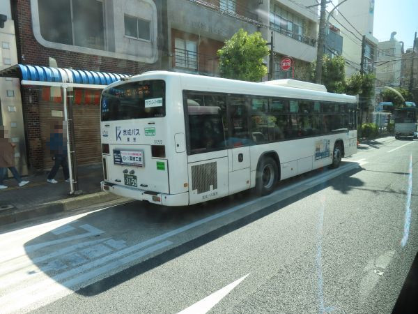 綾瀬駅と新小岩駅を結ぶ京成バス「新小51」系統を追い越す。