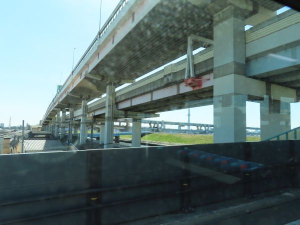 千住汐入大橋で隅田川を渡る。