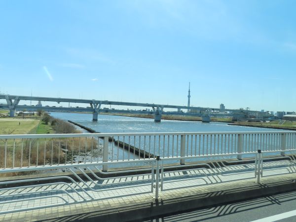 堀切橋で綾瀬川、荒川を相次いで渡る。