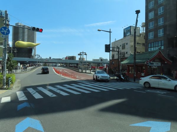 東武浅草駅前を通過し、吾妻橋交差点を直進する。
