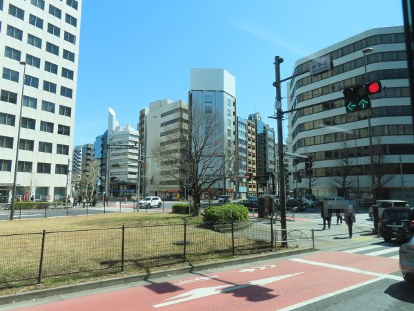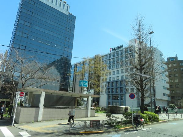 室町三丁目交差点を左折すると、新日本橋駅である。新日本橋駅では、中央区のコミュニティバス「江戸バス」の停留所を使うが、降車客はおらず通過する。