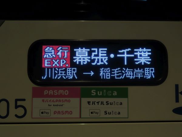 種別は「急行」であった。この便は、羽田空港を出ると、海浜幕張駅、幕張ベイタウン、検見川浜駅、稲毛海岸駅、幸町第三、千葉みなと駅、JR千葉駅西口、千葉中央駅の順に停車する。海浜幕張の主要ホテルには立ち寄らない。