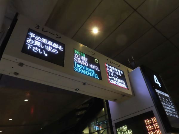 2026年3月22日日曜日。羽田空港第3ターミナルを19時10分に出る立川行きのバスに乗車する。京浜急行バスの担当であった。この便は、羽田空港から立川駅北口まで直行した後、ファーレ立川を経由し、終点はSORANO HOTELである。
