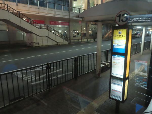 立川駅北口には20時25分に到着した。定刻である。ここで大半の客が降りる。